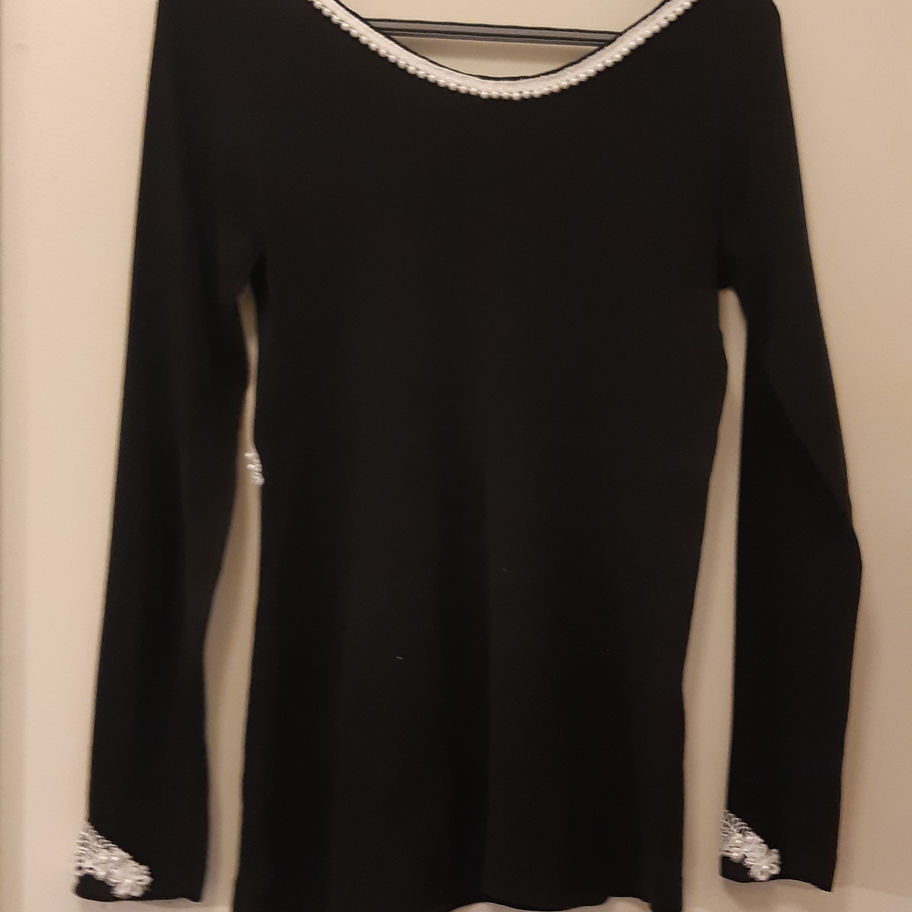 T-shirt couleur noire à manches longues, orné de broderies blanches